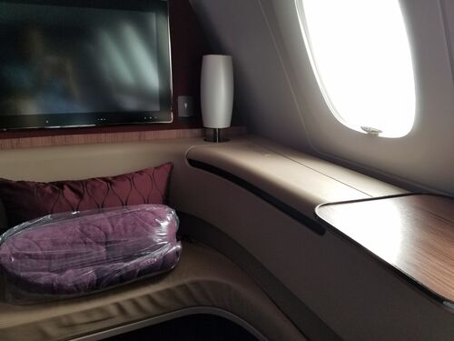www.kulipa3.com さあ、憧れのカタール航空ファーストクラスにいよいよ搭乗です。 ゲート前は混雑していて、座るところもなかったので、やっと座れるという感じ。 (ちなみに、次回詳しくお話しますが、ドーハ空港のゲートでは、ファースト・ビジネスクラス…