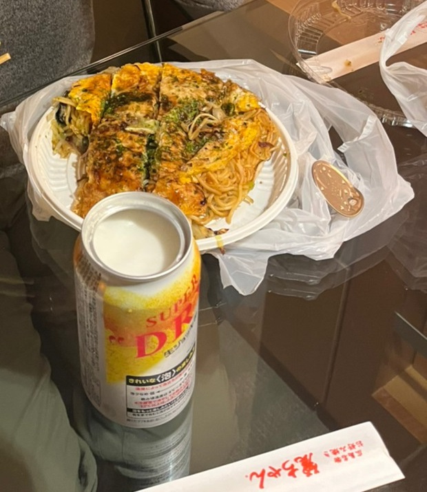 お腹いっぱいだったけど、友人が買ってきた広島焼(牡蠣入り!)のいい匂いにつられて、お裾分けいただいちゃいました。
