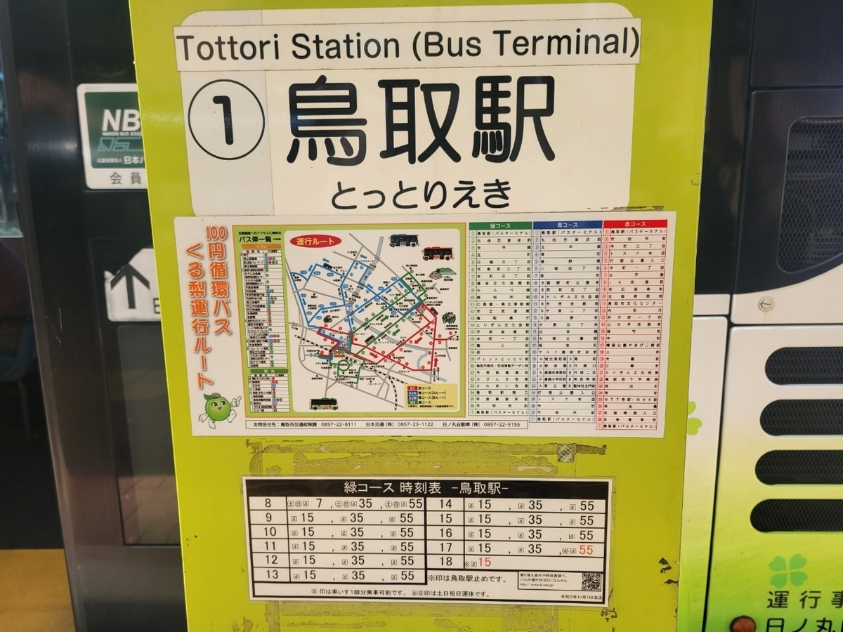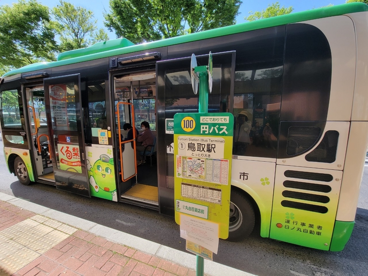 鳥取駅から路線バスに乗ろうとしていたら、係の方に、「100円バス」なるものがあって、しかも、路線バスよりも目的地の前に止まると教えていただきました。