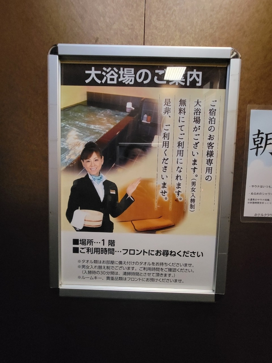 お部屋に風呂はありますが、1階に大浴場が一つあり、男女入れ替え制でした。