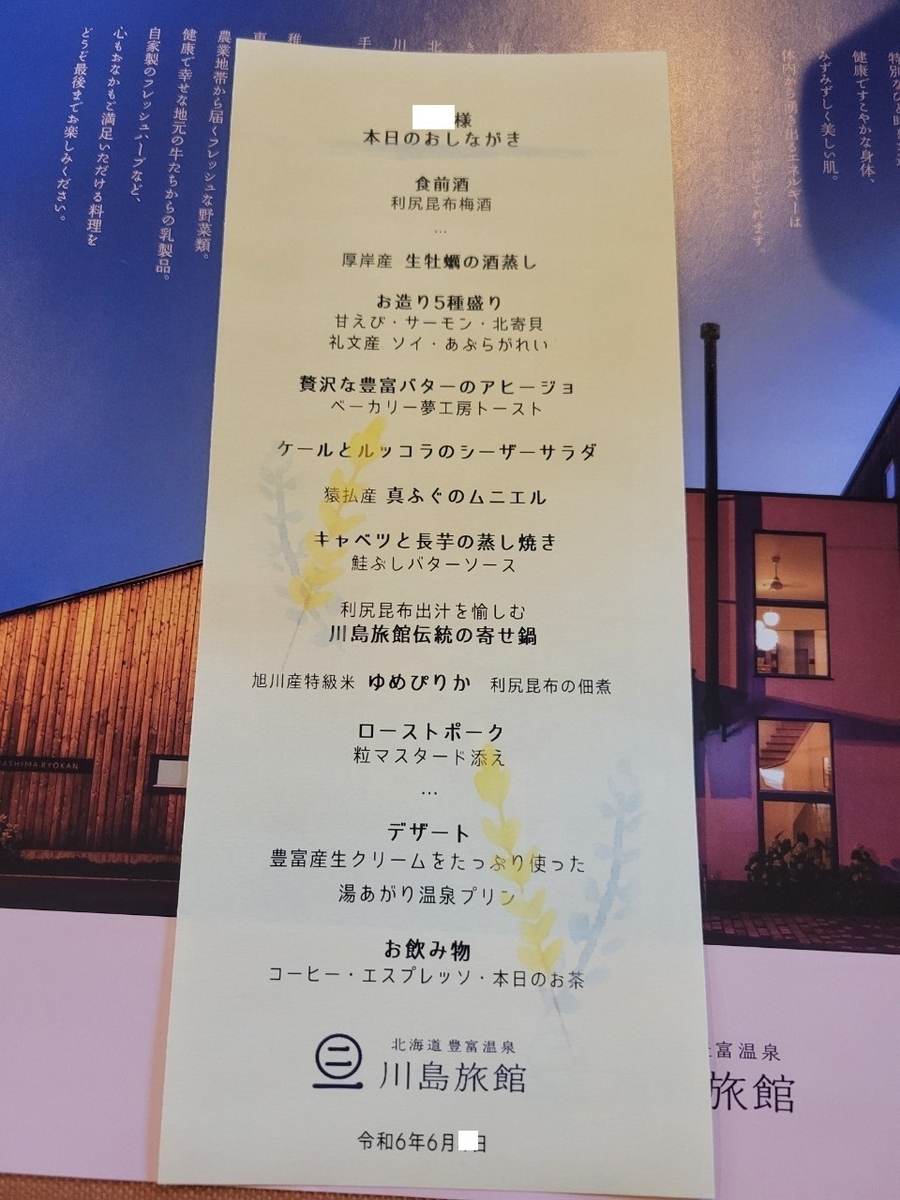 今回、夕食は「お膳」(豪華な方)をチョイスしました。