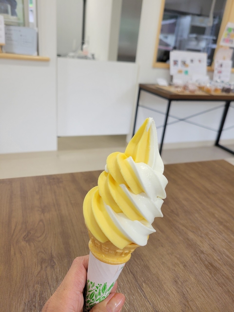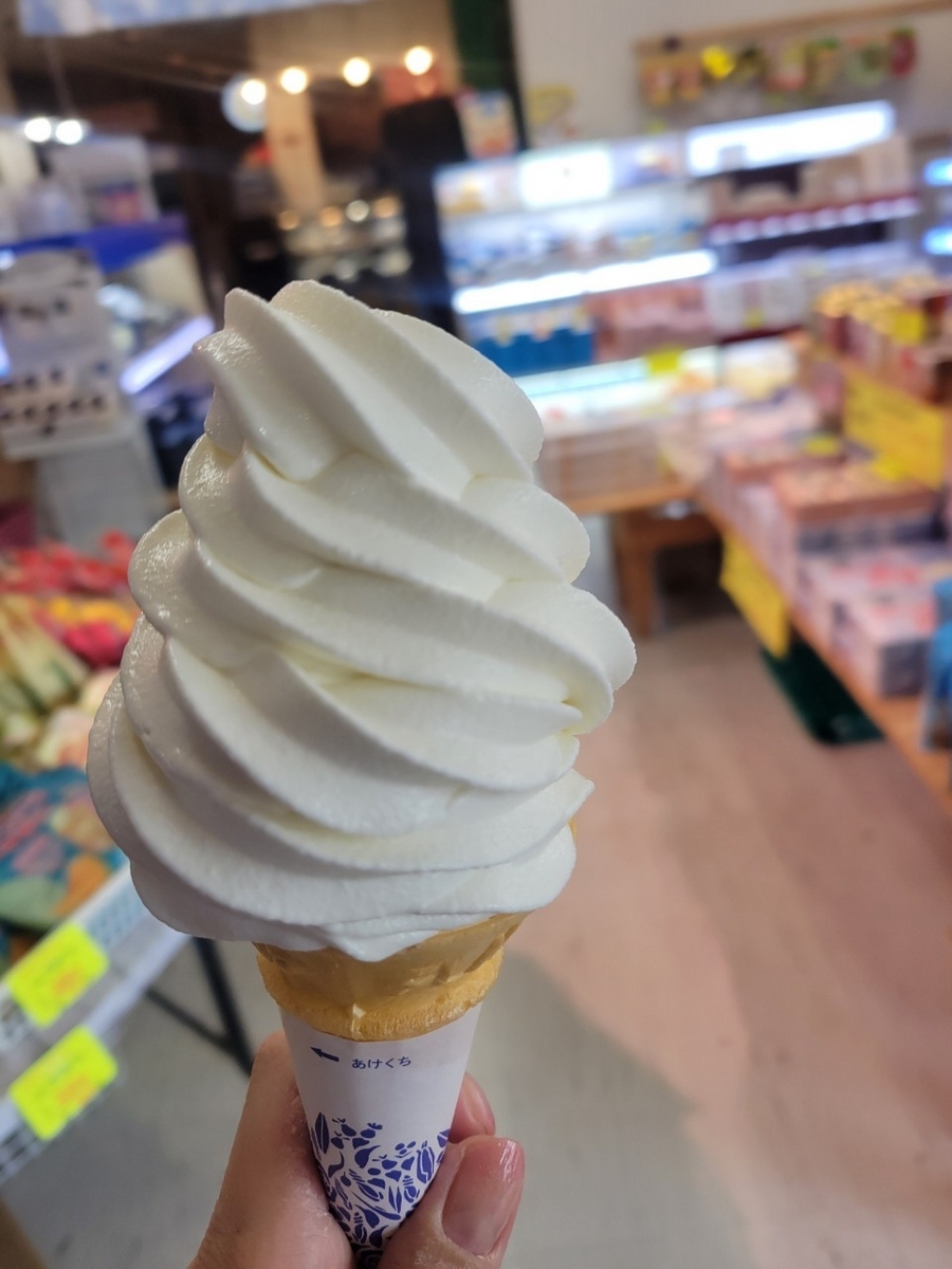 帰りには、副港市場に寄り道して、寒さに凍えながらソフトクリームを食べます(6月でもストーブつけるくらい寒かったです)。
